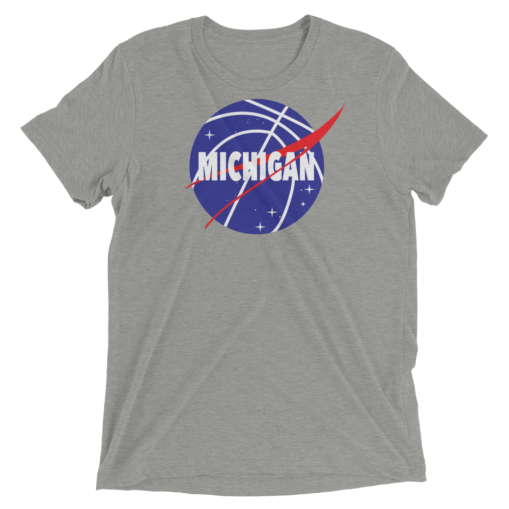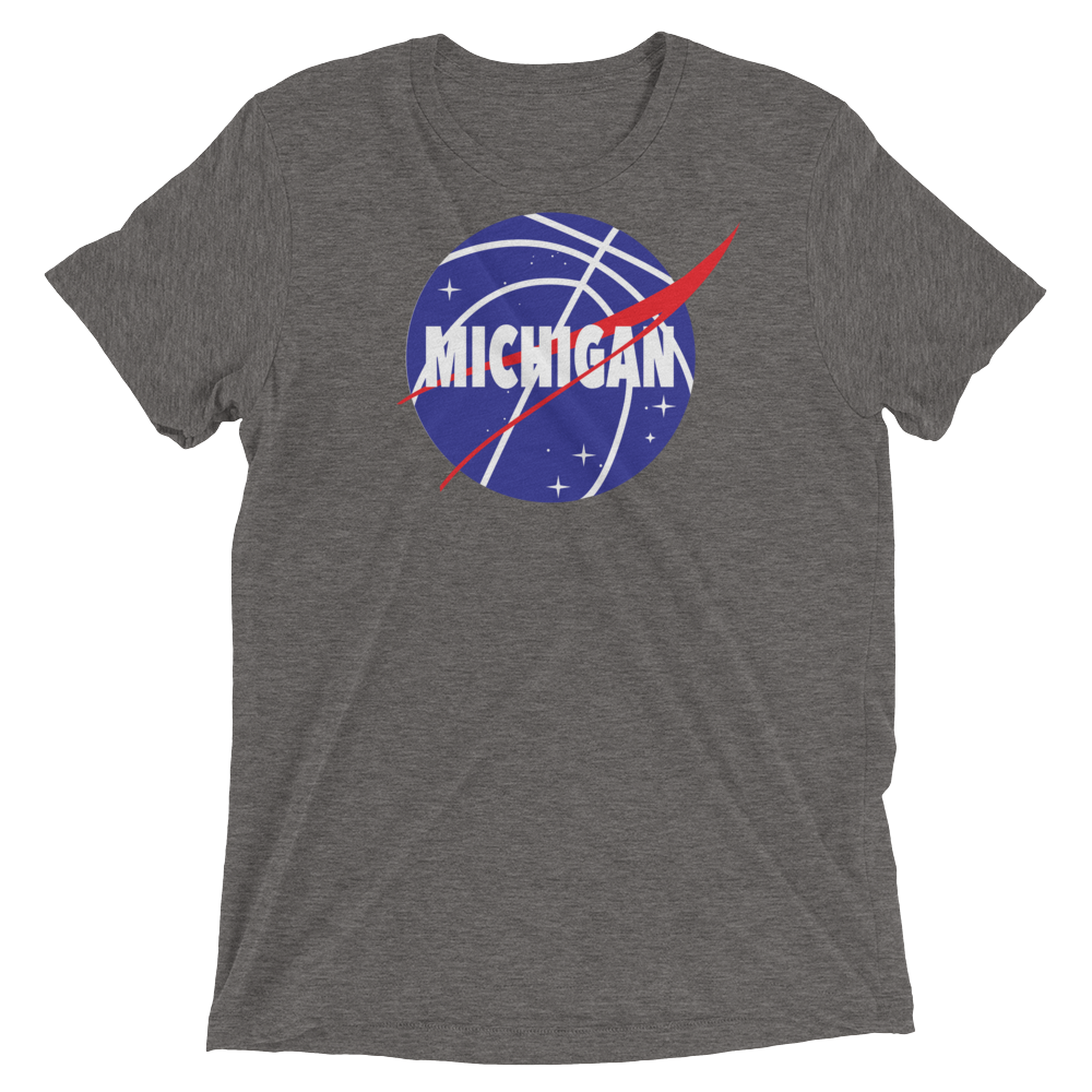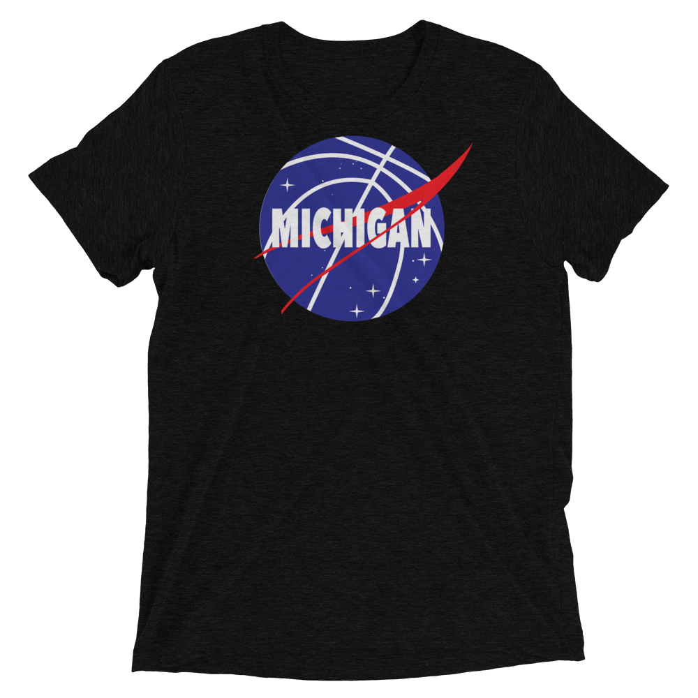 Blast off into space with this NASA-inspired Michigan basketball t-shirt. How else can you balance you after-hours astronomy admiration with your favorite team playing your favorite sport? This is the ultra soft Michigan basketball t-shirt you have been looking for!